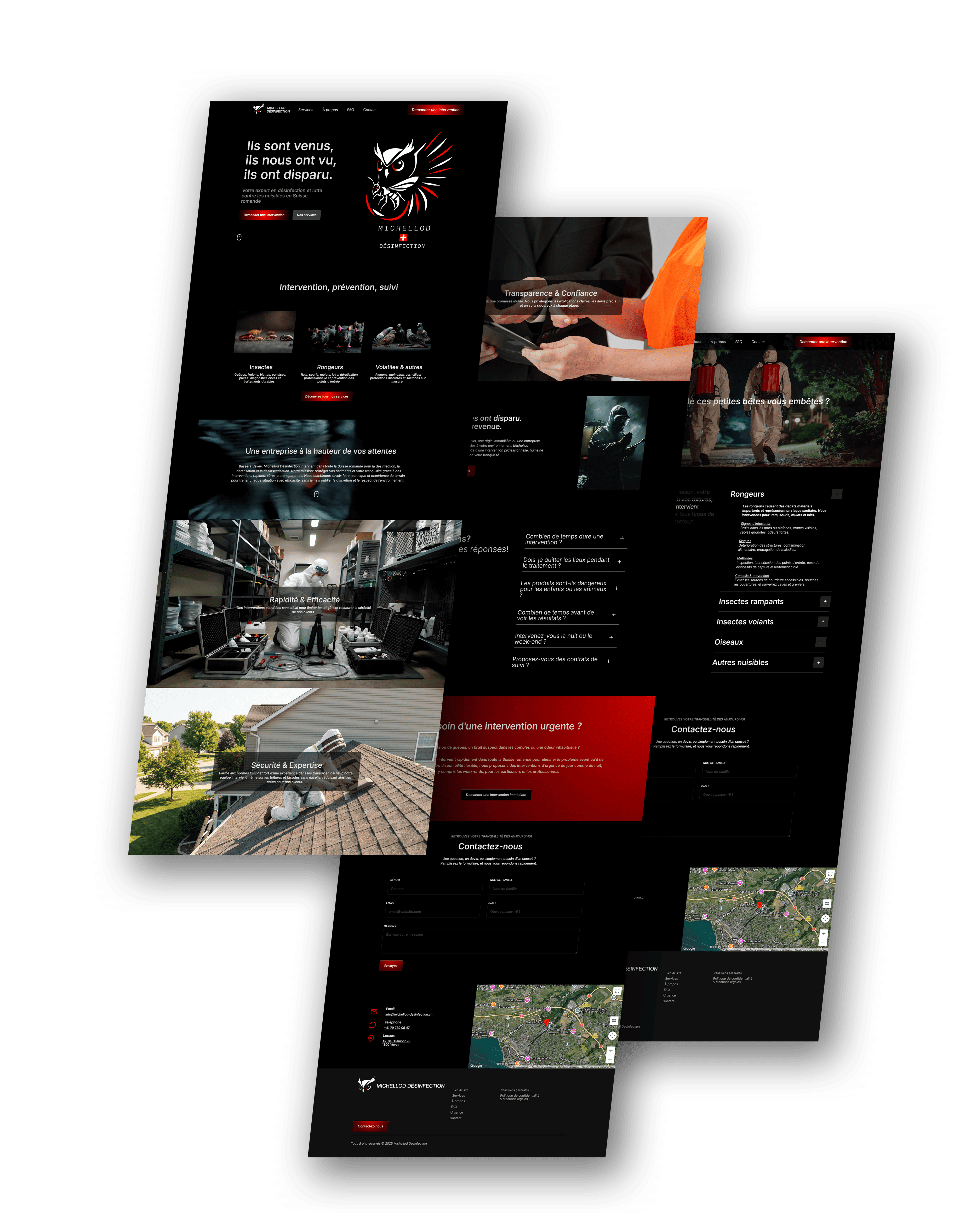 Notre vision était de créer une plateforme claire et efficace, mettant en avant leurs prestations de désinfection, dératisation et interventions spécialisées, tout en facilitant la prise de contact rapide en cas d’urgence.